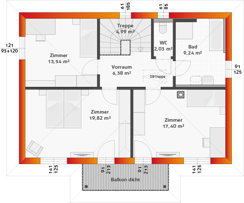 73.40 m2 Basis-Obergeschoss