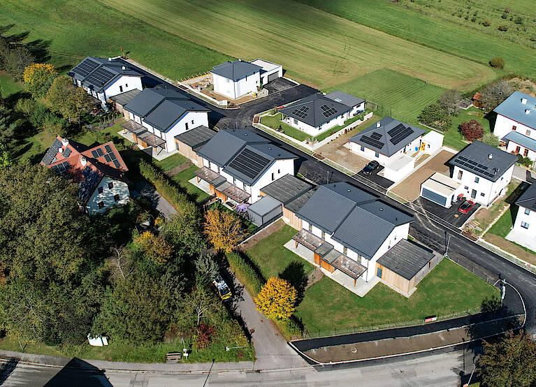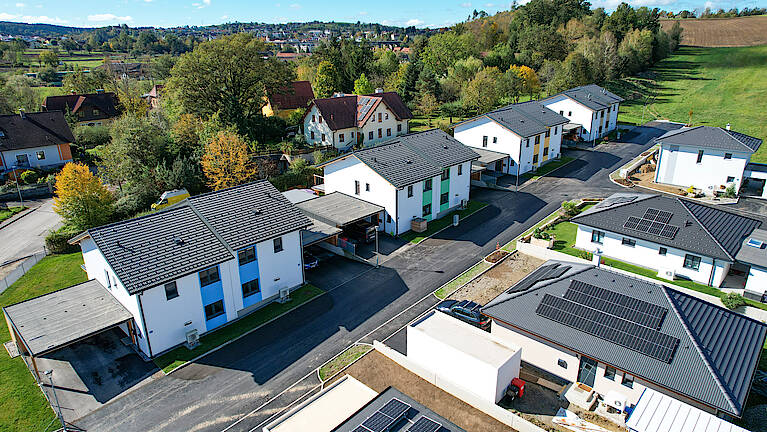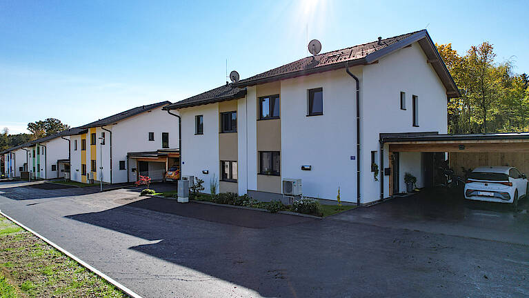 Die Doppelhaushälften verfügen jeweils über einen Doppelcarport und großzügige Grundstücksflächen zwischen 304 und 542 m². Mit einer Nettogrundrissfläche von 138,04 m² in ökologischer Niedrigstenergiebauweise – ausgeführt in bewährter HARTL HAUS Qualität – bieten sie modernen Wohnkomfort. Hochwertige Details wie die Eiche-Massivholztreppe sowie Holz-Alu-Eingangstüren und Fenster mit 3-Scheibenverglasung aus der hauseigenen Tischlerei stehen für Langlebigkeit und Wertbeständigkeit. Für ein angenehmes Raumklima sorgen die Luft-Wasser-Wärmepumpe mit Fußbodenheizung und Kühlfunktion sowie die kontrollierte Wohnraumlüftung. Abgerundet wird das Wohnkonzept durch den südseitigen Garten mit Terrasse und einen großzügigen Geräteraum.